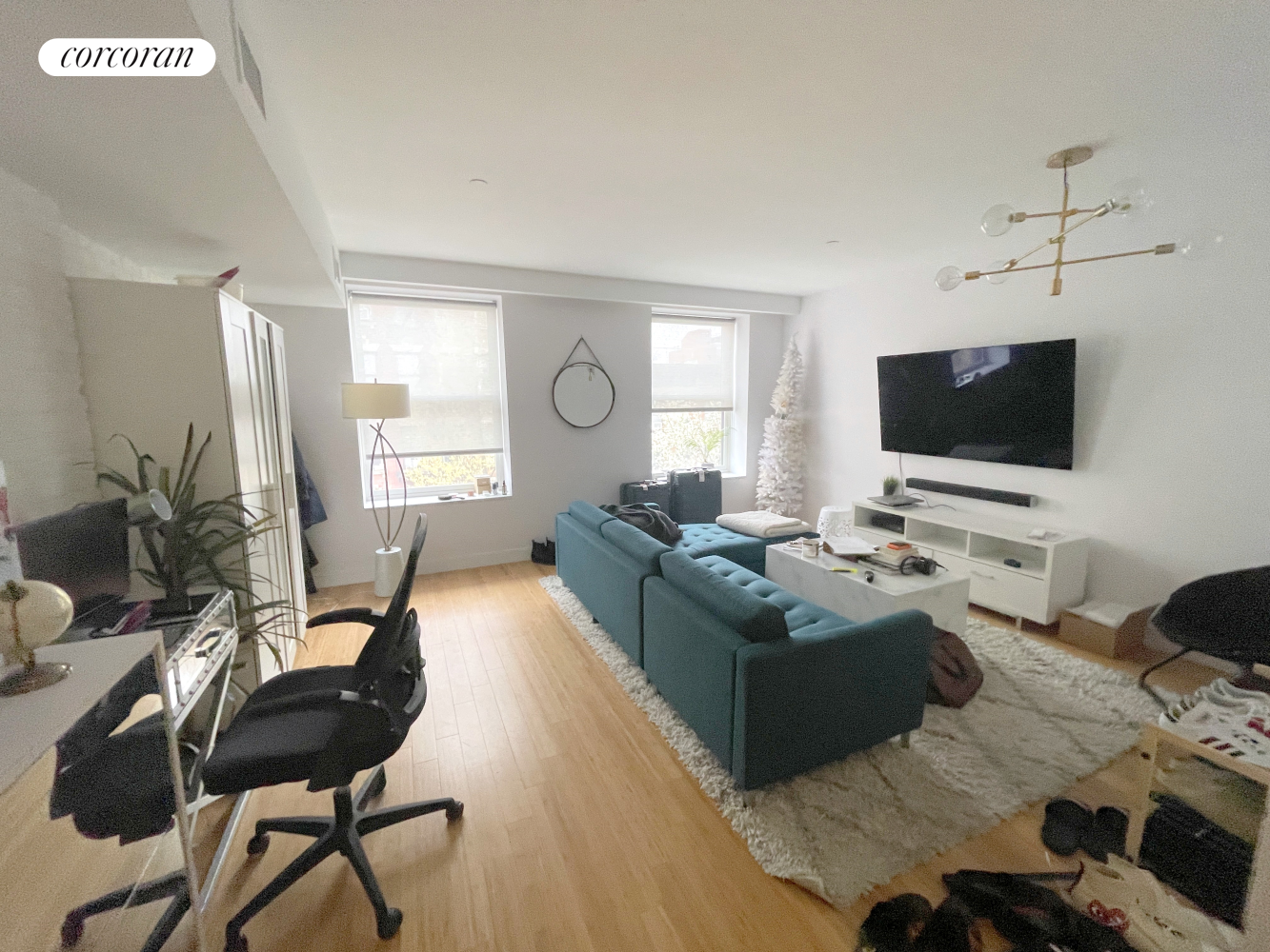 Upon entry, you're greeted by an intimate lobby vestibule that sets the tone for the chic ambiance permeating throughout the 1060 square feet of living space. Natural bamboo floors and presumed exposed brick walls harken back to its storied past, while a state-of-the-art multi-zone CAC system ensures year-round comfort.